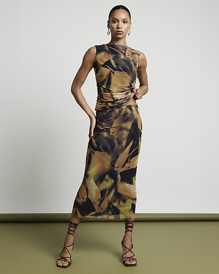 Buy River Island Yellow Floral Print Tie Waist Midi Skirt from Next Luxembourg Very well made.