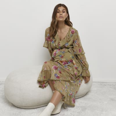 River Island Floral Frill Wrap Midi Dress Pink Very Ireland Very well made.