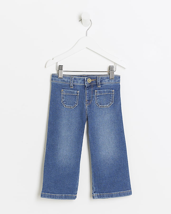 Mini girls blue pocket wide leg jeans River Island Very well made.