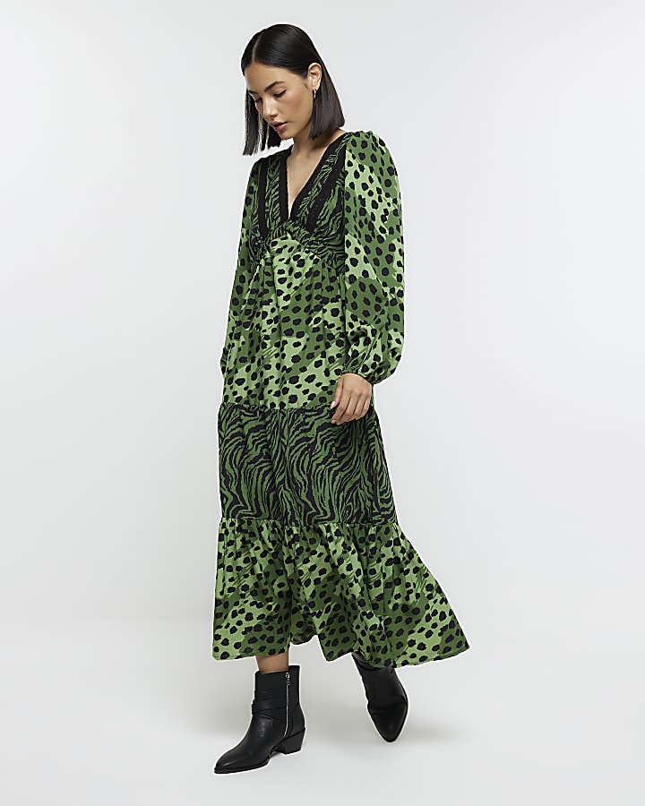 Green animal print swing midi dress River Island Very well made.
