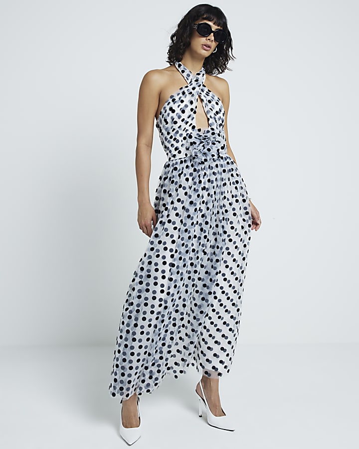 White spot cross halter neck swing maxi dress River Island Very well made.