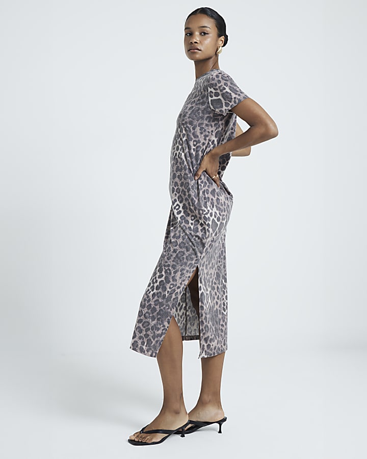 Brown leopard print t shirt midi dress River Island Very well made.