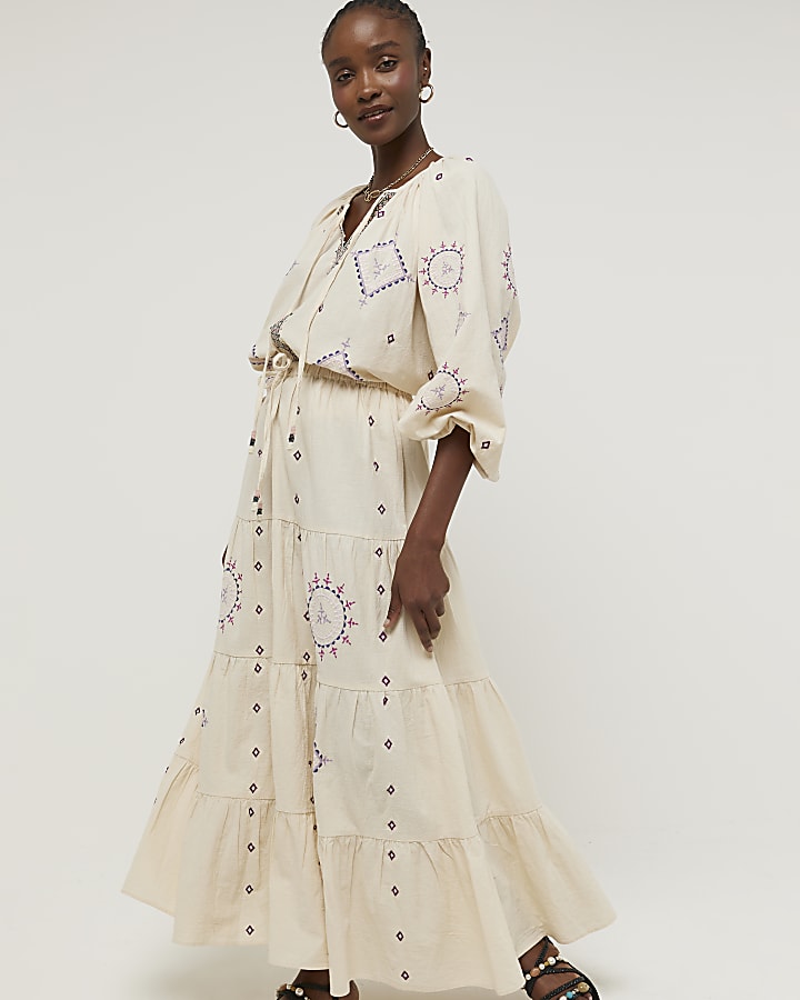 Cream Embroidered Tiered Maxi Skirt River Island Very well made.