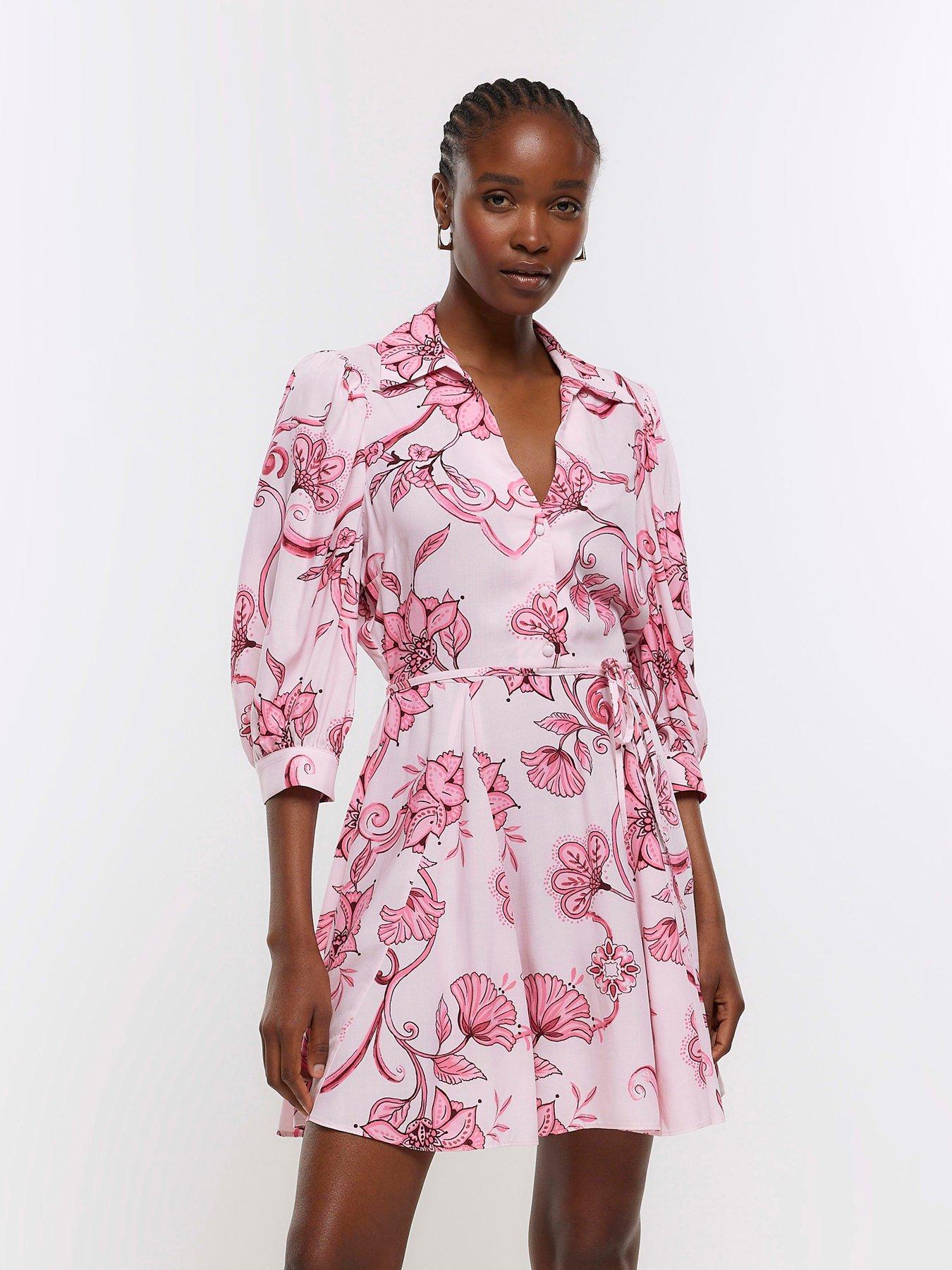 Pink floral belted mini shirt dress River Island Very well made.