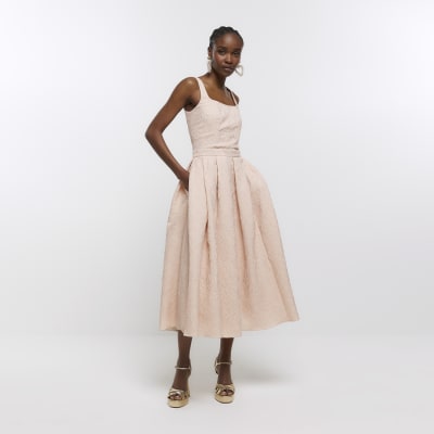 Pink textured prom swing midi dress River Island Very well made.