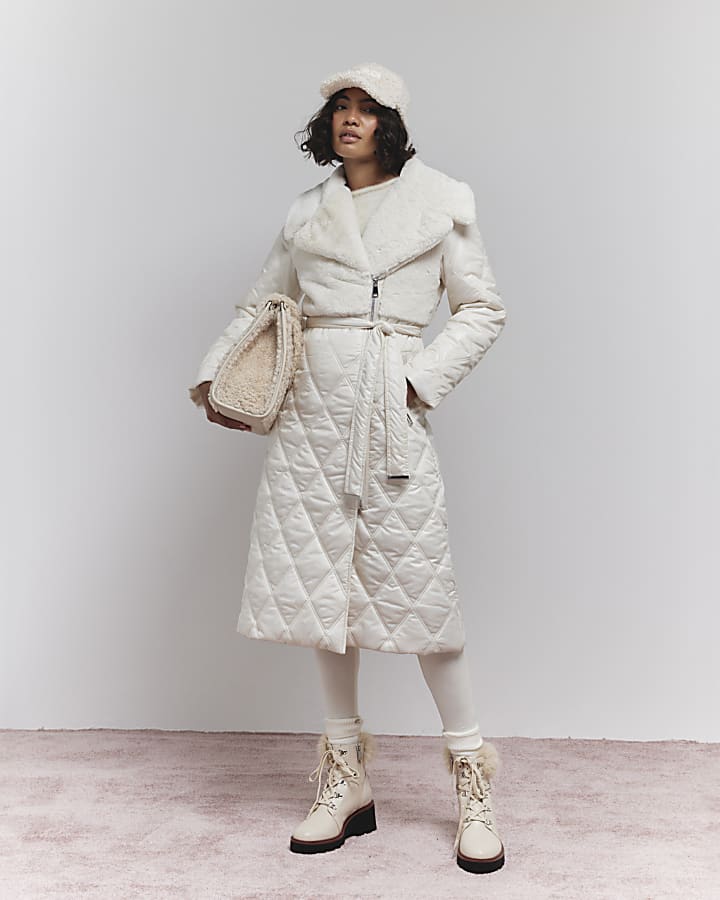 Cream Faux Fur Quilted Longline Coat River Island Very well made.