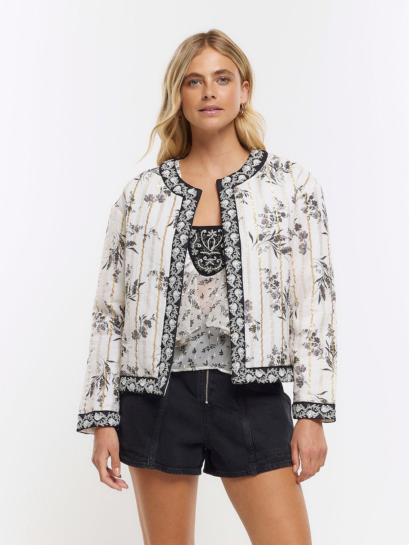 River Island Quilted Embroided Jacket Cream Very Ireland Very well made.