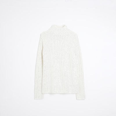 White Embellished High Neck Jumper River Island Very well made.