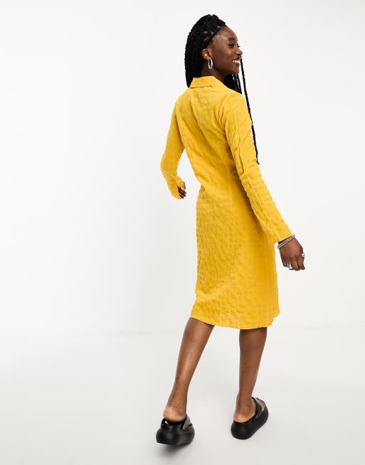 Weekday Robe chemise texturee mi longue a smocks Jaune ASOS Very well made.