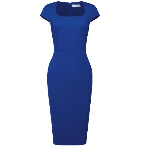 Hobemty Women s Work Square Neck Cap Sleeve Midi Sheath Pencil Dresses Royal Blue Small Very well made.