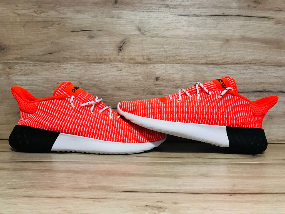 Adidas Tubular Dusk Primeknit Men s Shoes Solar Red Cloud White Black B37737 Very well made.