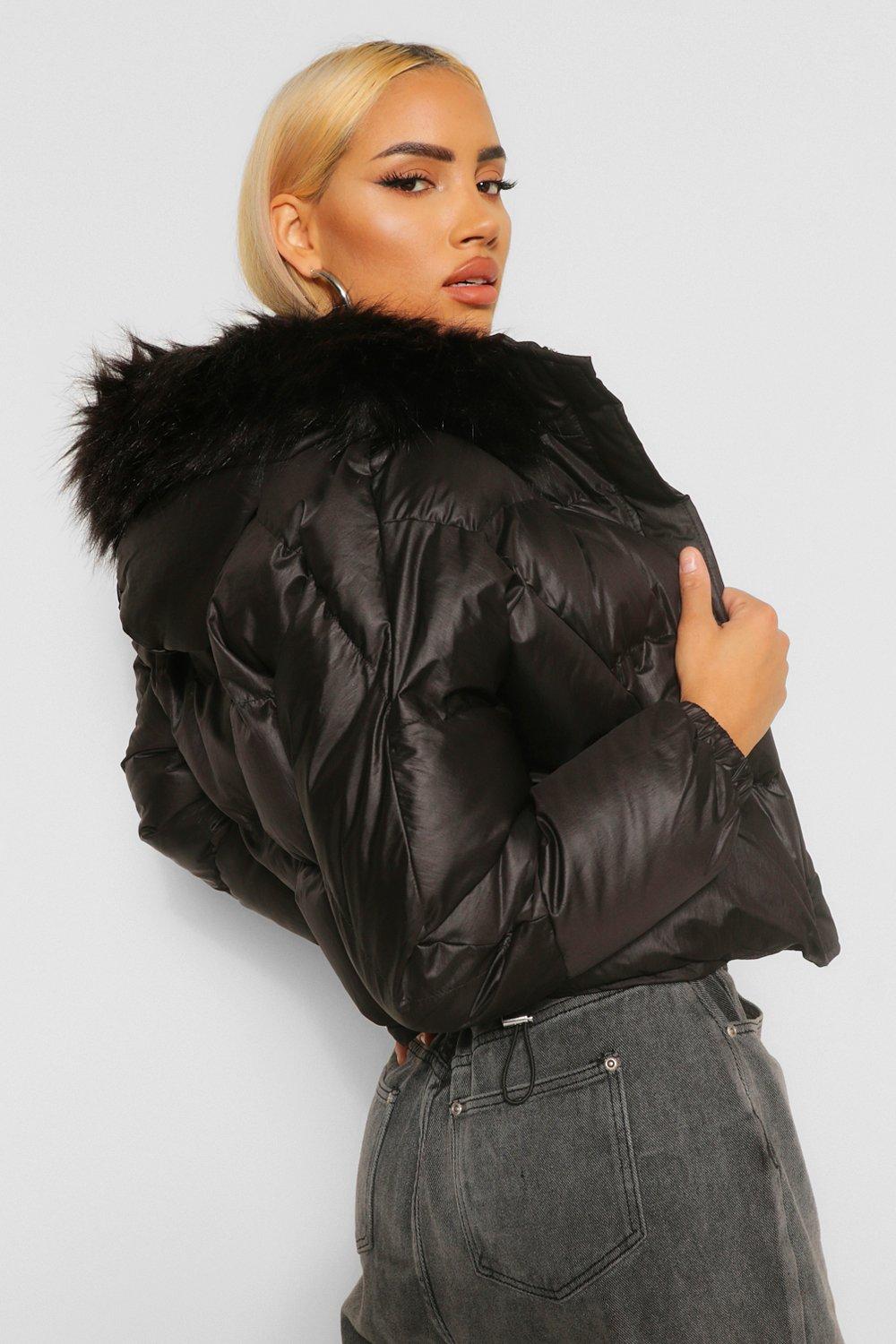 Faux Fur Trim Coated Satin Puffer boohoo Very well made.