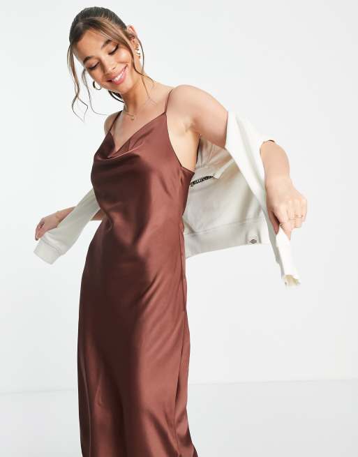 New Look Satin Tragerkleid in Braun mit Wasserfallausschnitt ASOS Very well made.