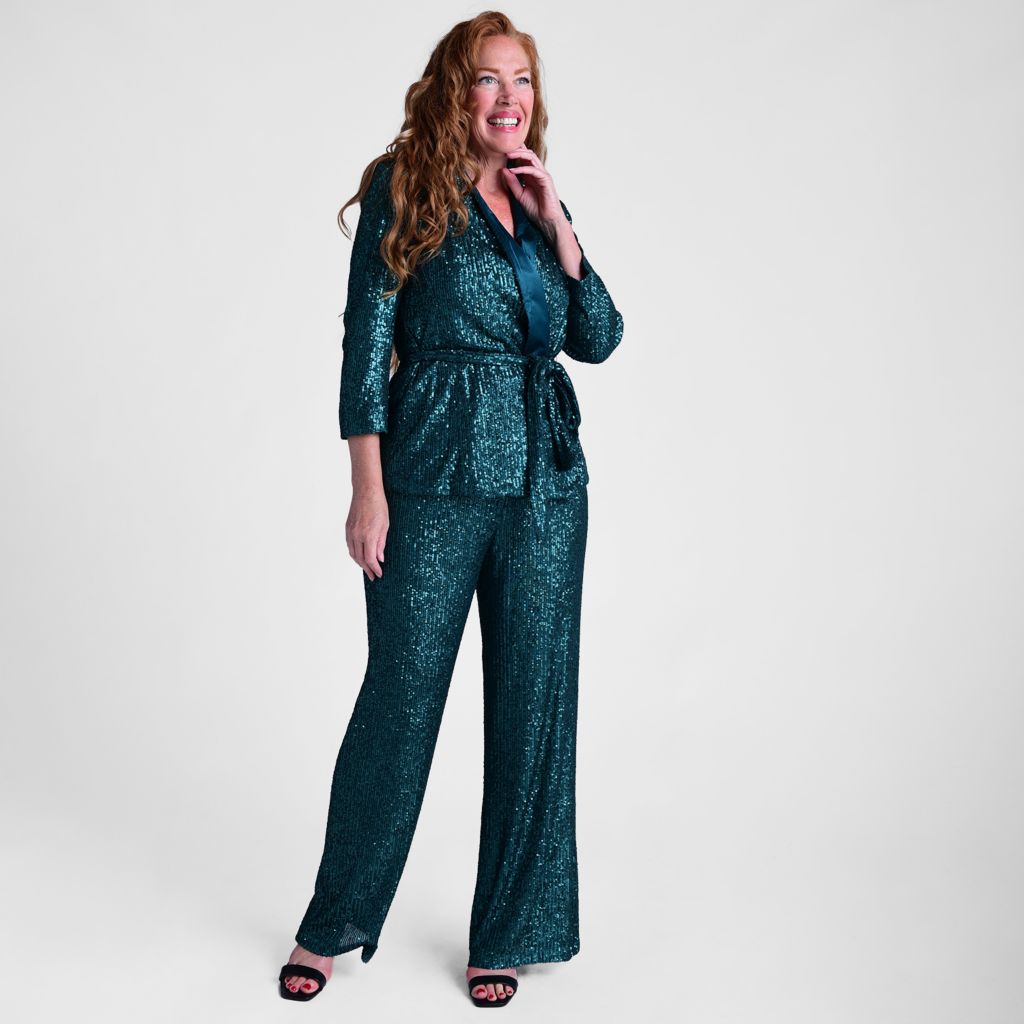 Kate Mallory Sequined Jacket Pants Set on sale at shophq 775 862 Very well made.