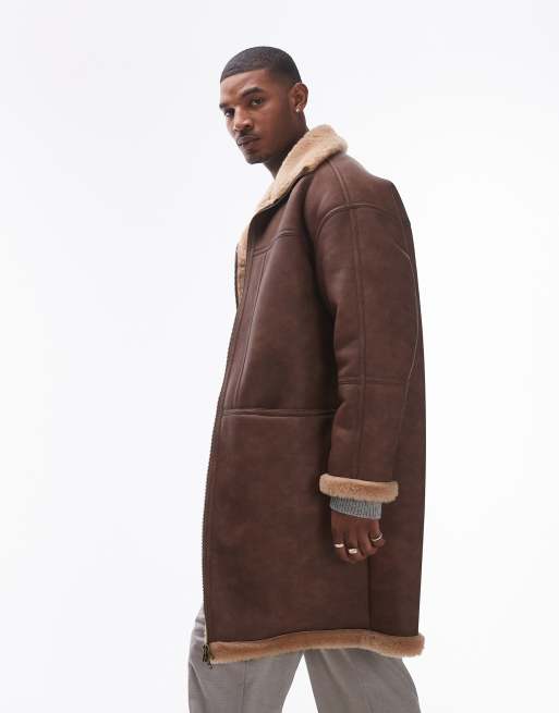 Topman longline faux shearling jacket in brown Very well made.