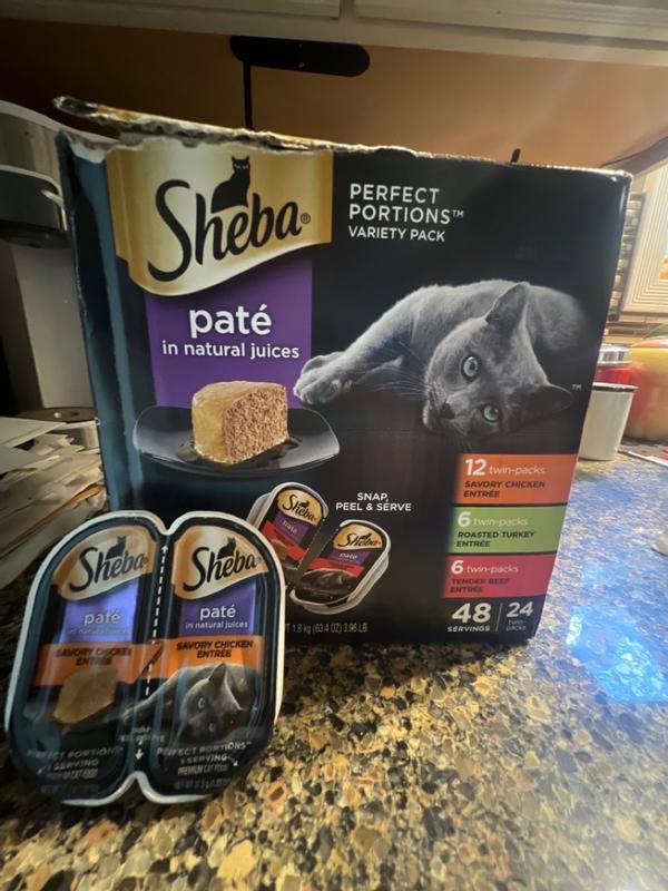 SHEBA PERFECT PORTIONS Premium Pate Savory Chicken Entree Roasted Turkey Entree and Tender Beef Entree Very well made.