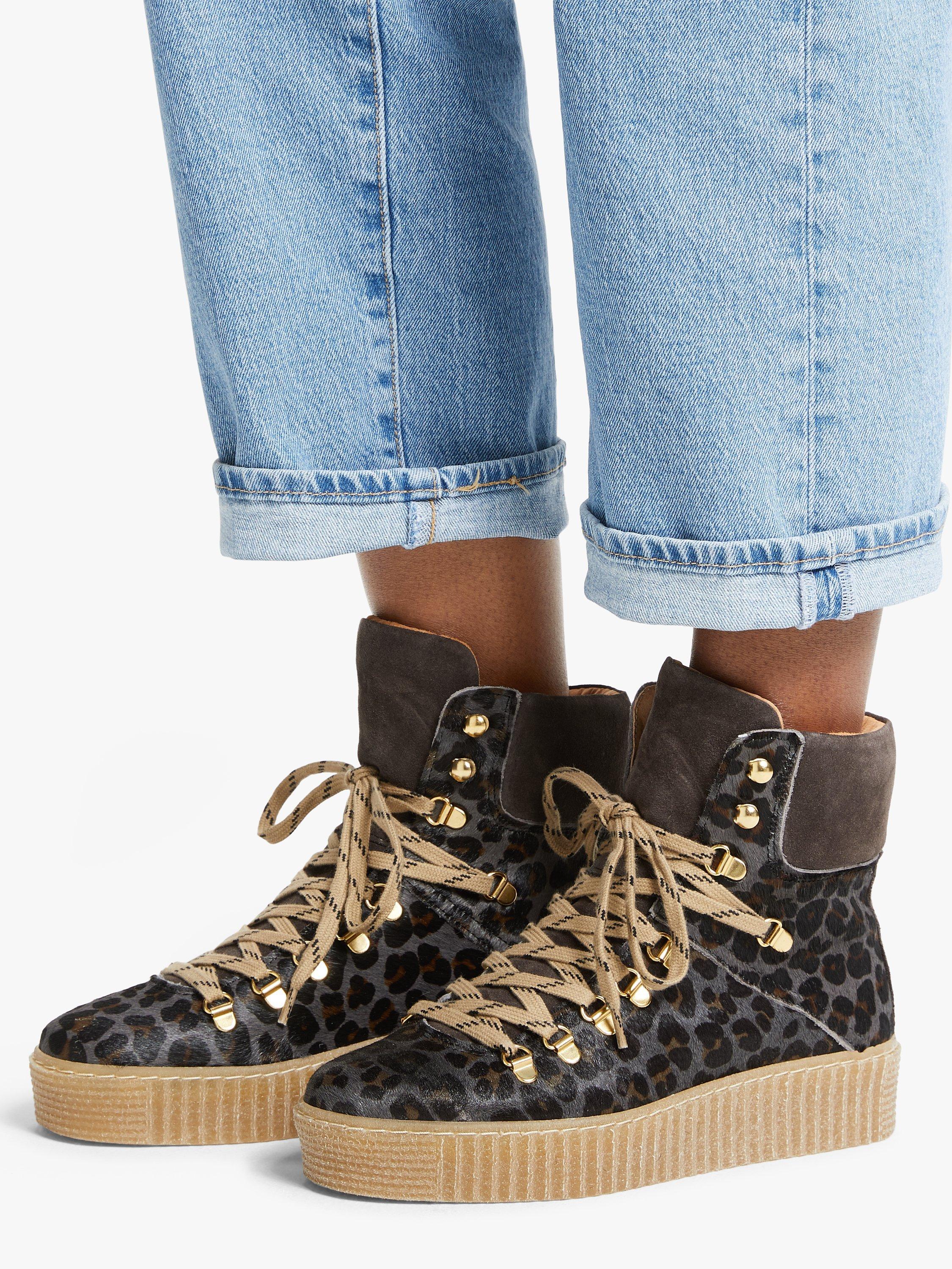SHOE THE BEAR Agda Pony Skin Leopard Print Lace Up Hiker Boots Very well made.