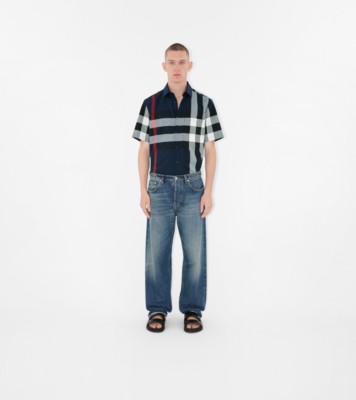 Check Cotton Shirt in Navy Men Burberry Official Very well made.