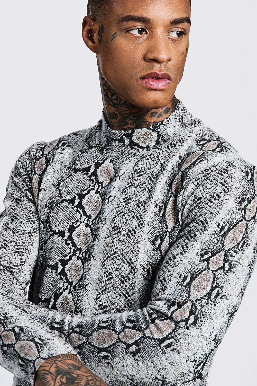 Muscle Fit Snake Print Turtleneck Sweater boohoo USA Very well made.