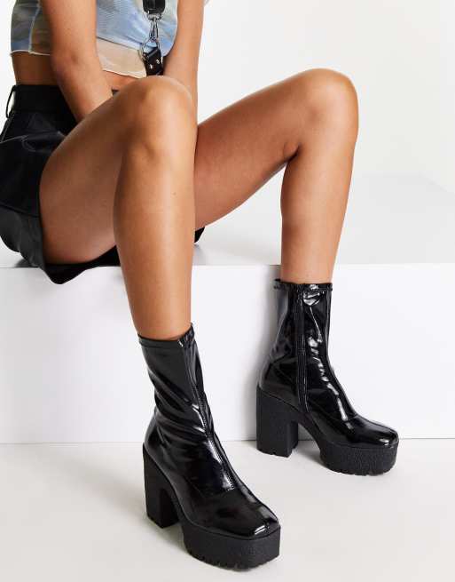 ASOS DESIGN Wide Fit Elena Schwarz lackierte Sock Boots mit hohem Absatz weite Passform ASOS Very well made.