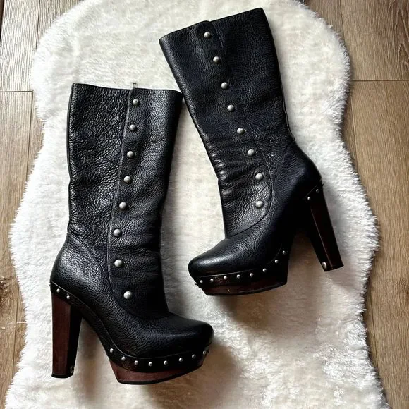 Ugg Cosima Black Tall Leather Boots Accented With Studs 1001615 Women s Size 9 Very well made.