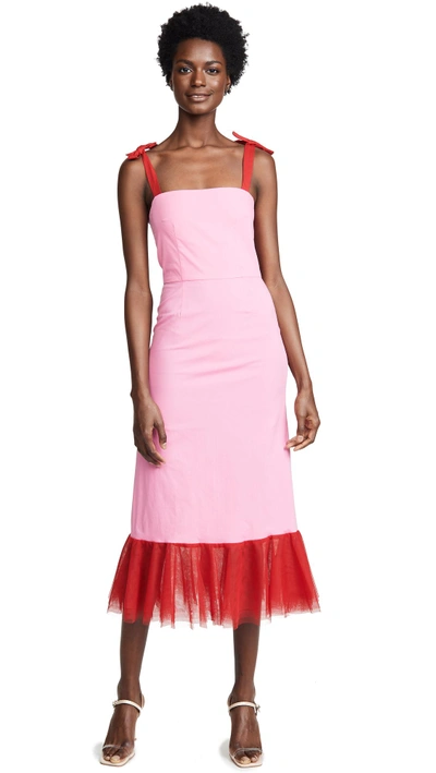 Staud Langdon Dress Red Pink Tulle A Line Midi Style Charade Very well made.