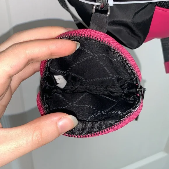 NEW STEVE MADDEN PINK ROSE NYLON BLACK ACCENT MINI POUCH BACKPACK BAG Very well made.