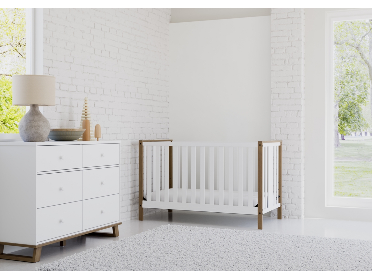 Storkcraft Crescent 6 Drawer Double Dresser Pebble Gray GREENGUARD Gold Certified For Nursery Dresser Kids Nursery Organizer Chest of Drawers Very well made.