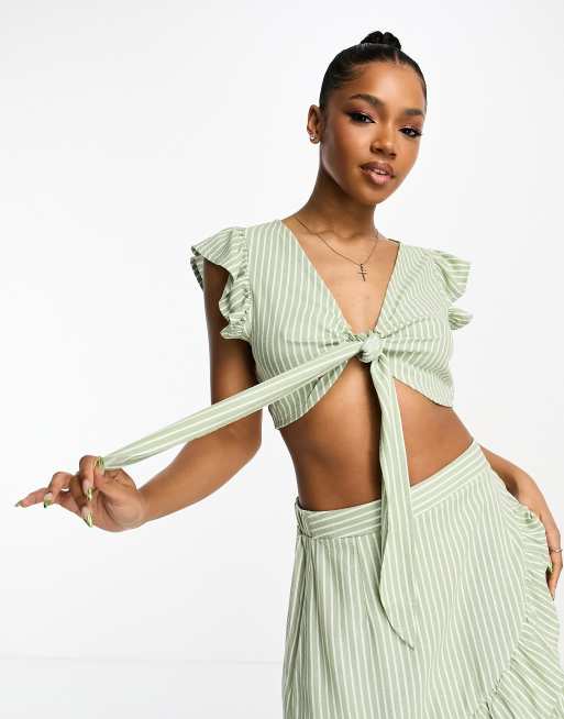 Vero Moda linen touch knot front crop top and skirt co ord in green stripe ASOS Very well made.