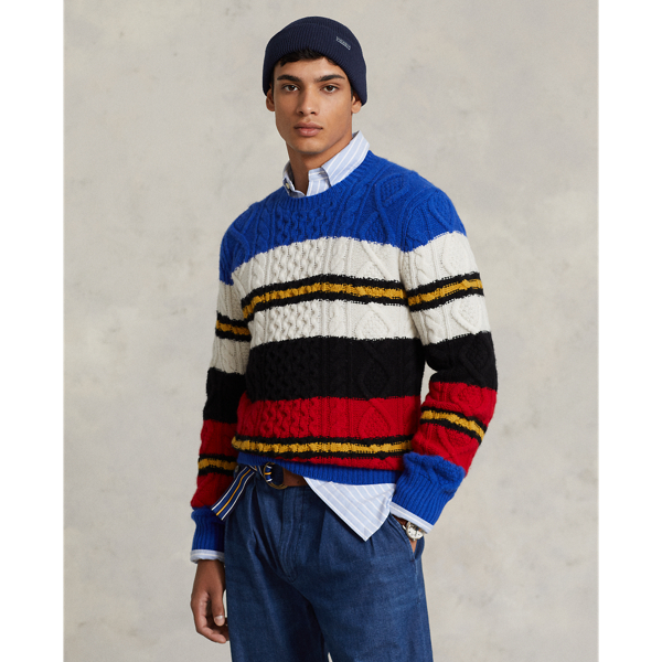 Striped Aran Knit Wool Blend Jumper for Men Ralph Lauren UAE Very well made.