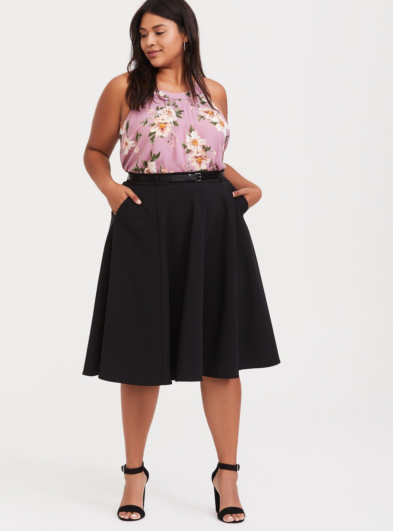 Plus Size Black Midi Skater Skirt with Belt Torrid Very well made.