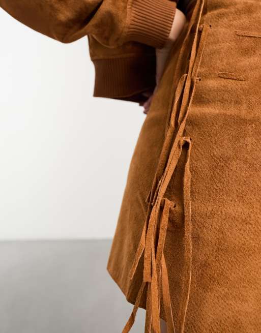 ASOS DESIGN real suede mini skirt with fringing detail in tan Very well made.
