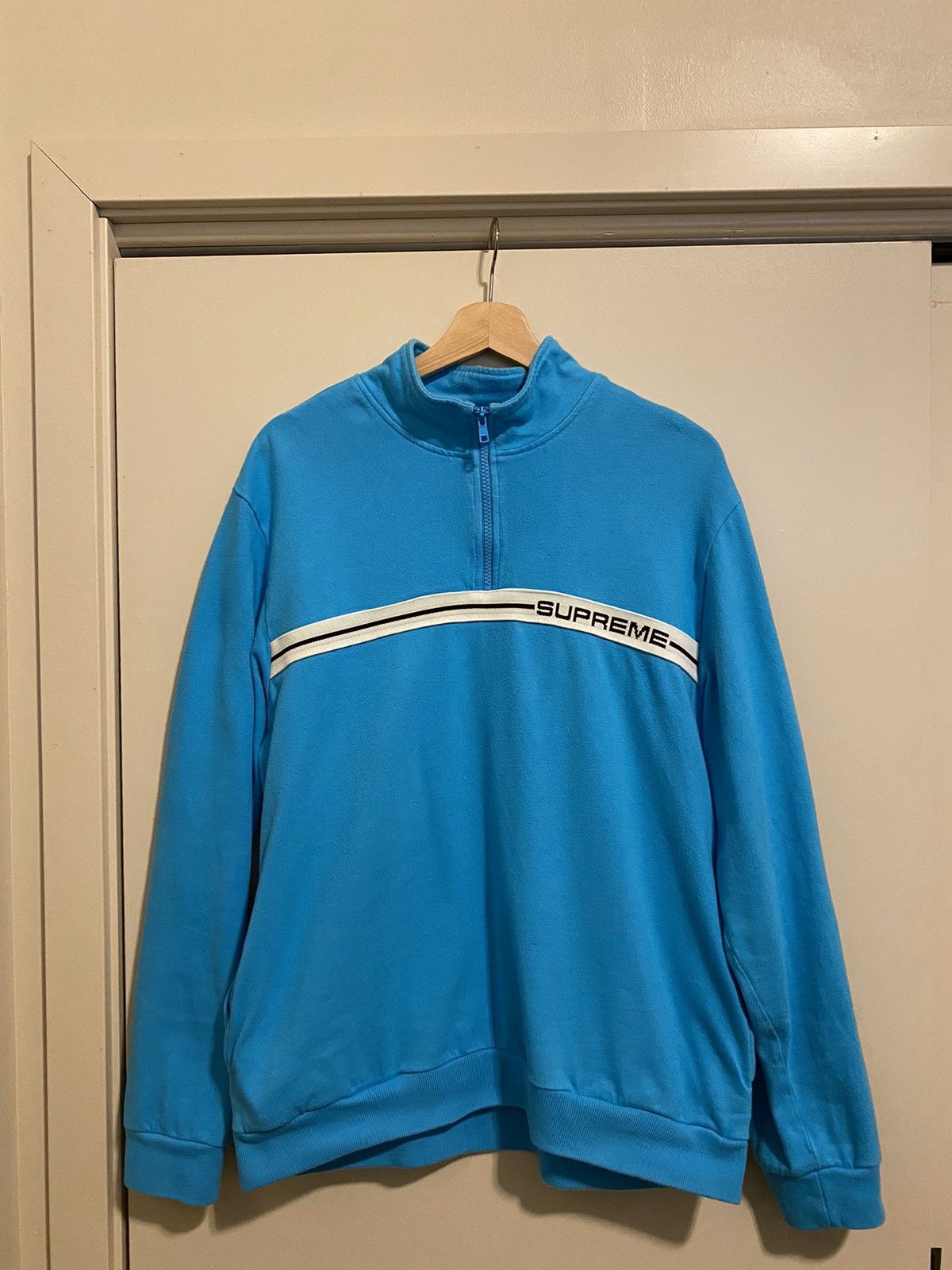 SUPREME SS18 HALF ZIP WARM UP XL LIGHT BLUE PULLOVER 1 4 VNDS eBay Very well made.