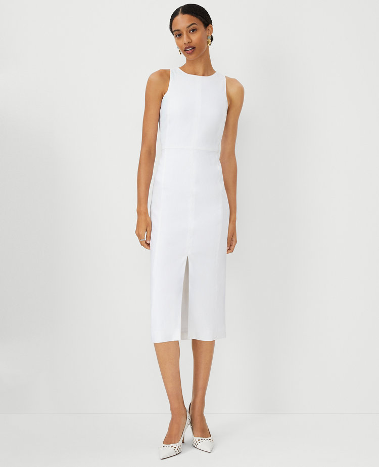 Tall Linen Twill Crew Neck Sheath Dress Very well made.