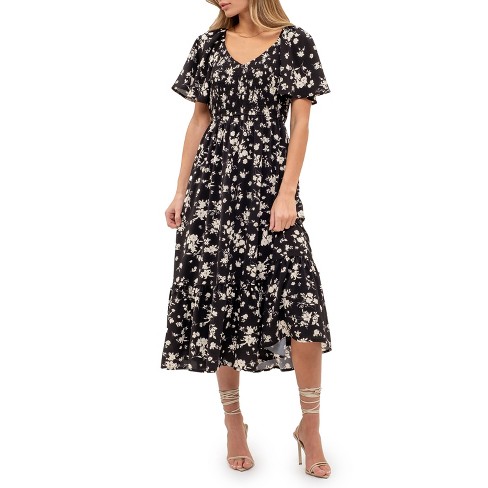 August Sky Women s Short Flounce Sleeves Floral Midi Dress Black Large Target Very well made.