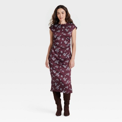 Women s Short Sleeve Ruched Midi Shift Dress A New Day Burgundy Floral S Target Very well made.
