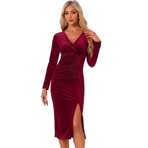 Inspire Chic Women s V Neck Velvet Ruched Split Cocktail Evening Wrap Dress Dark Red X small Target Very well made.