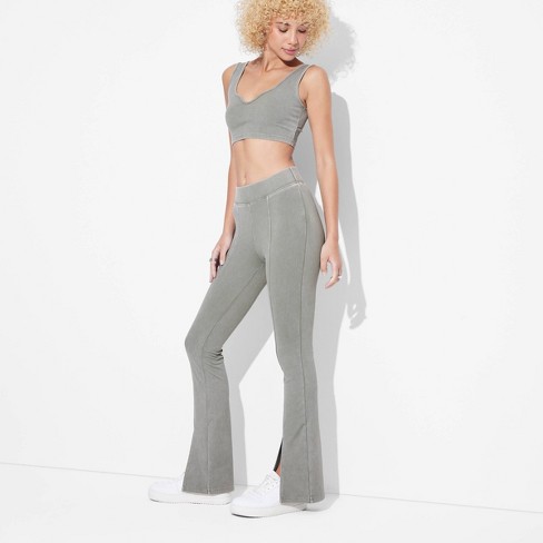 Women s High waisted Ribbed Flare Leggings Wild Fable Light Gray S Target Very well made.