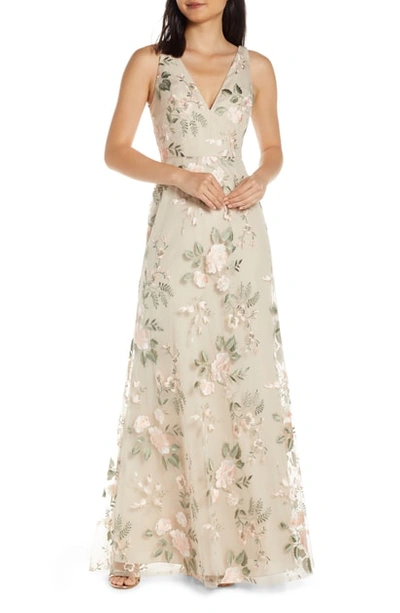 Shop Jenny Yoo Tatum Floral Embroidered Tulle Evening Dress In Blush Sand Dune Very well made.