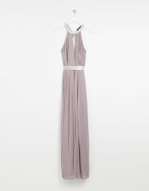 TFNC pleated maxi bridesmaid dress with cross back and bow detail in grey Very well made.
