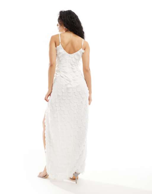 TFNC Bridal chiffon 3D maxi slip dress in ivory Very well made.