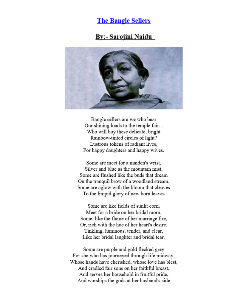 The Bangle Sellers by Sarojini Naidu About The Poem PDF Poetry Very well made.