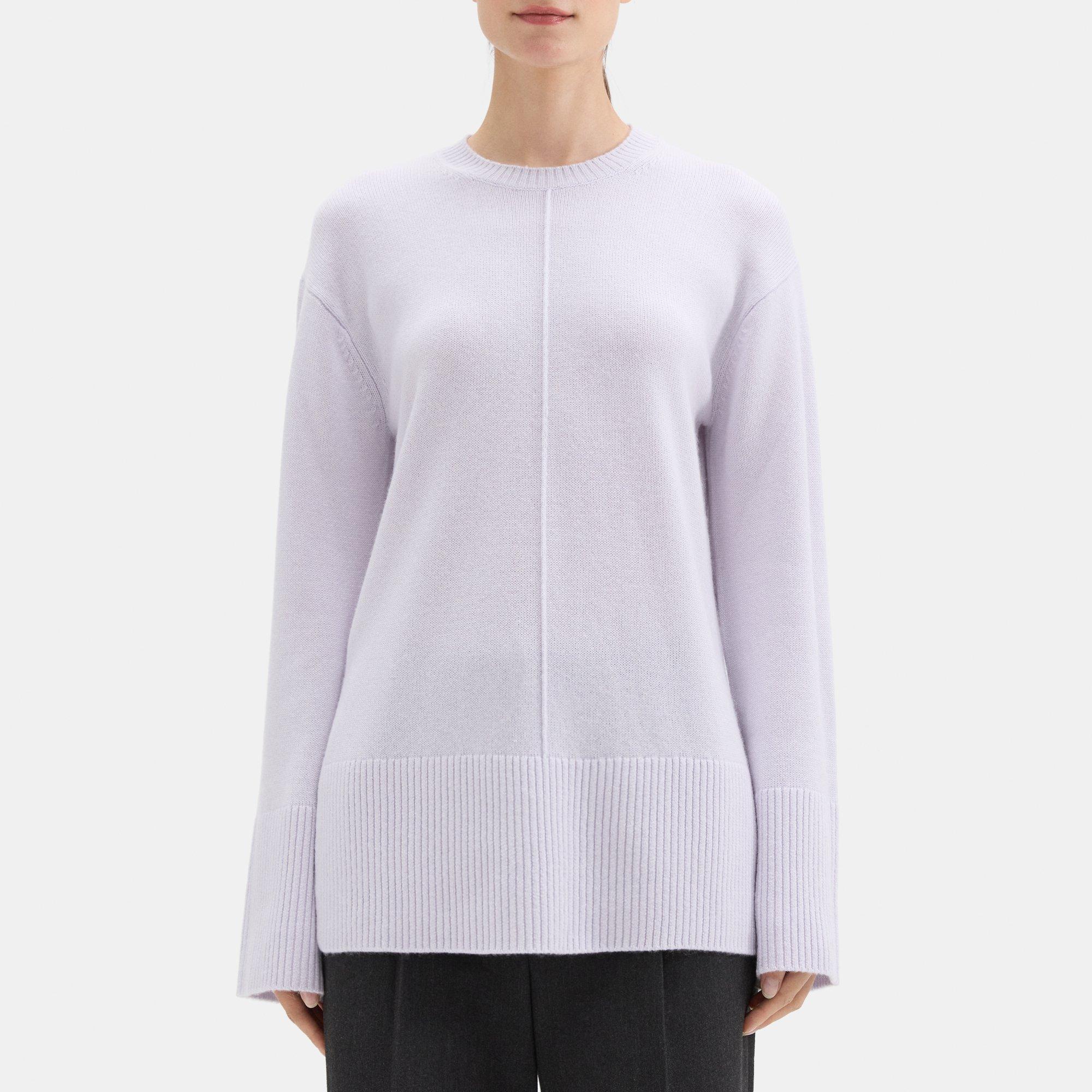 Theory Oversized Crewneck Sweater in Wool Cashmere Silver Very well made.