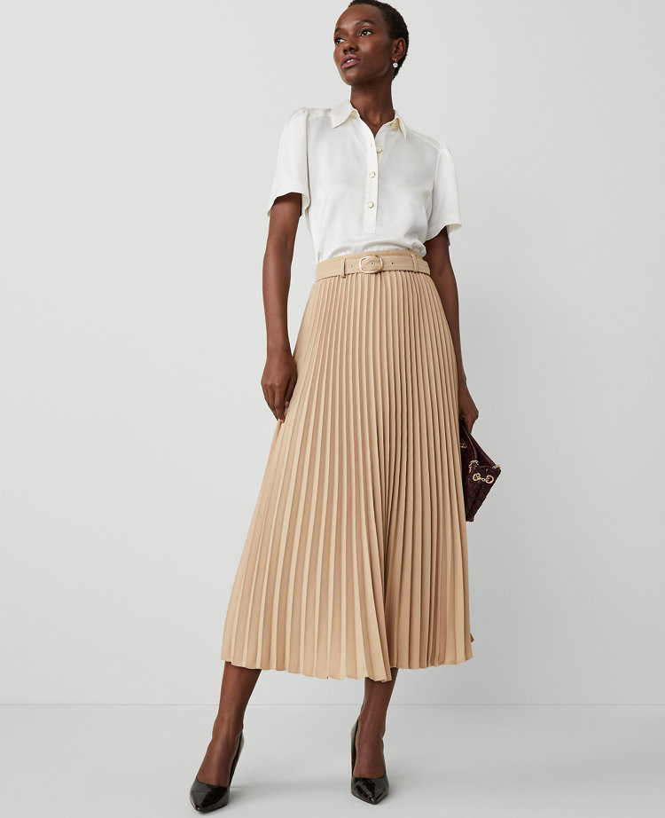 Ann Taylor Belted Pleated Midi Skirt Size 10 Baguette Women s Very well made.