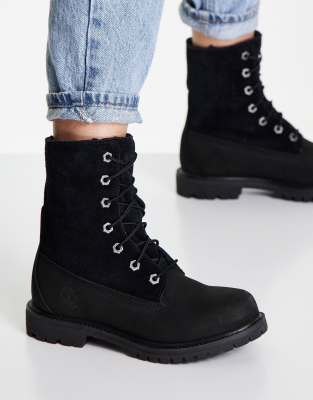 Timberland Teddy Fleece Fold Down Boots Womens Black Size 8 Very well made.