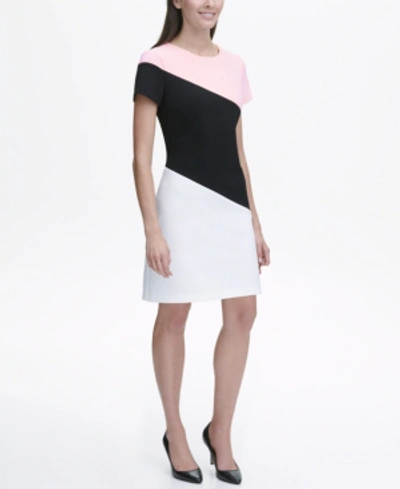 Tommy Hilfiger Scuba Crepe Diagonal Colorblock Shift Dress In Black white pink ModeSens Very well made.