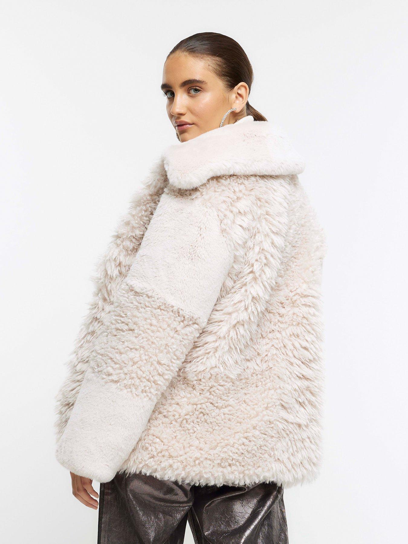 River Island Patchwork Faux Fur Coat Cream Very Ireland Very well made.