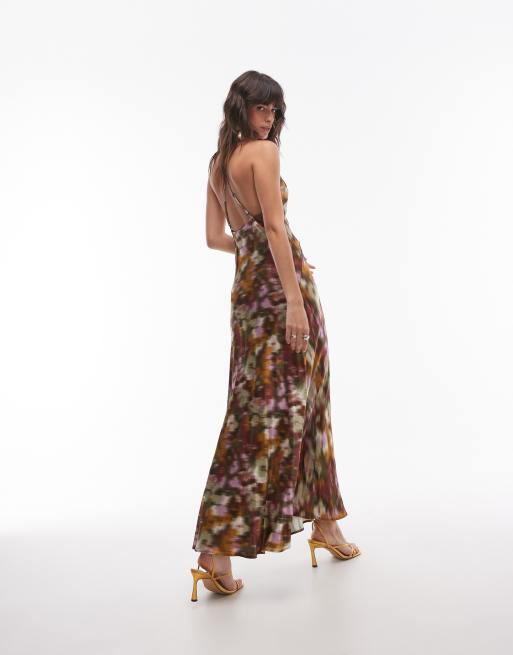 Topshop deep v open back midi dress in blurred floral ASOS Very well made.