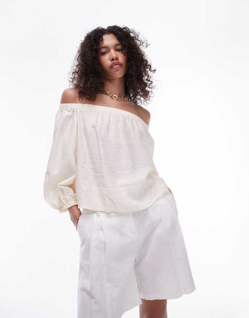 Topshop heavy twill bardot off the shoulder top in cream Very well made.