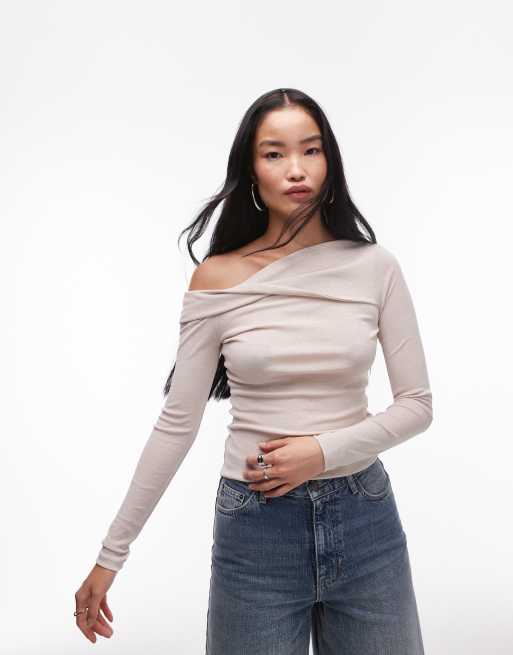 Topshop twist off shoulder top in off white Very well made.